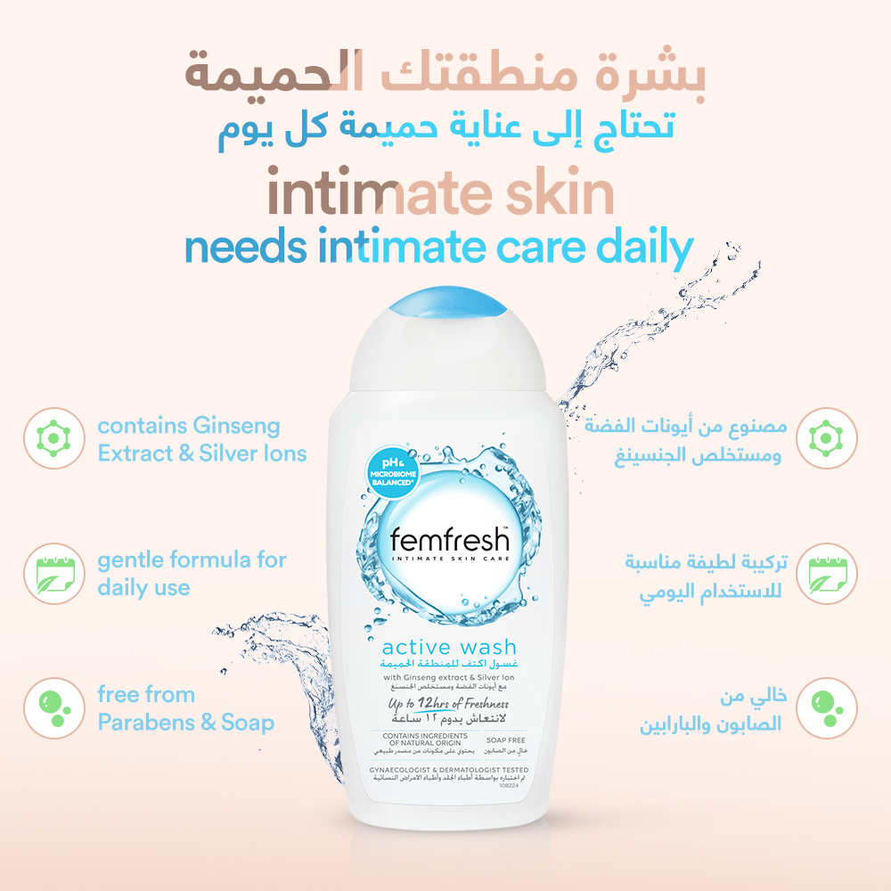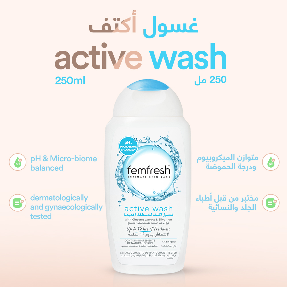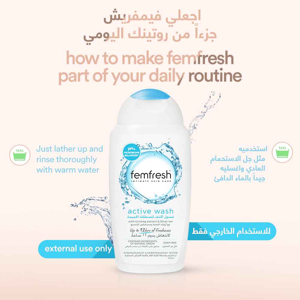 أضيفي الانتعاش إلى عاداتك بعد التمارين مع غسول أكتيف منعش للعناية القصوى من فيمفريش